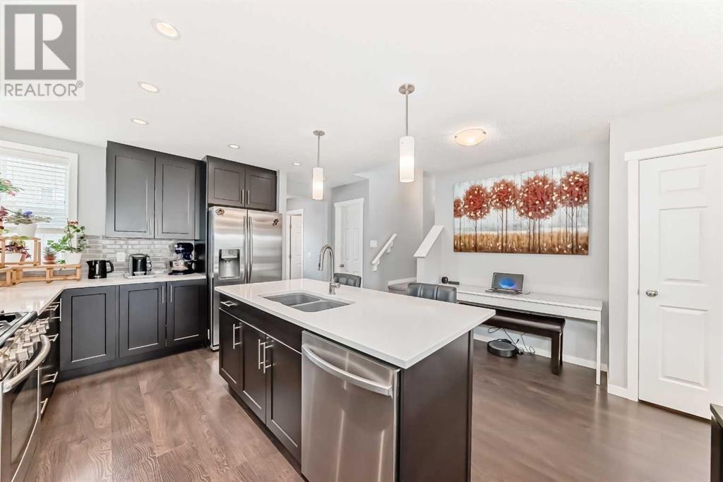 This well-maintained detached home features over 1,500 sq. ft. of living space and is located on a quiet street across from a green space, which offers style, comfort, and convenience. This beautiful 2-storey home shows pride of ownership and is sure to impress from the moment you arrive. With standout curb appeal, low-maintenance landscaping, and a welcoming front porch, this property blends comfort and convenience in one of Calgary's most family-friendly community of Copperfield. Step inside to discover a bright and inviting foyer with custom built-in bench seating and large windows. The open-concept main floor is perfect for both entertaining and everyday living. The chef-inspired kitchen features rich espresso cabinetry, quartz countertops, modern subway tile backsplash, a massive island with breakfast bar, pendant lighting, and stainless steel appliances including a gas range. The spacious dining area is enhanced by a stylish chandelier and easily accommodates a full-size table, with views that flow effortlessly into the living room—complete with large windows and ample natural light. Just off the kitchen, a dedicated workstation nook makes working from home a breeze. A pantry for extra storage and a tucked away powder room complete this floor. Upstairs, the primary bedroom offers a tranquil retreat with a walk-in closet and a 4-piece ensuite that includes dual vanities and a separate shower. Two more generously sized bedrooms, an additional 4-piece bathroom, and a convenient upper-level laundry room complete the second floor. The unfinished basement includes rough-in plumbing and awaits your creative vision. Outside, enjoy summer evenings on large deck that offers BBQ gas line. Paved concrete space and double detached garage add even more function to this fantastic outdoor space. The community offers reputable schools, transit access, skating rinks, tennis courts, vibrant community center, plenty of parks, tranquil ponds, extensive connected pathways and coupl e neighborhood shopping areas. Major plazas such as South Trail Crossing and McKenzie Towne are adjacent to the community. Easy access to major road ways of Stoney trail and Deerfoot Trail. Schedule your showing today, as you don't wont to miss out on this home! (id:48488)